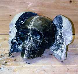 covering it to form. After dry, cut in half and remove skull. Tape skull back together,